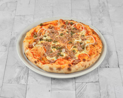 Sauce tomate, Mozzarella, Thon, Câpres, Oignons, Origan