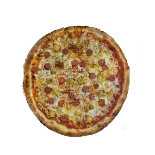 Sauce tomate, Mozzarella, Merguez, Poulet, Origan